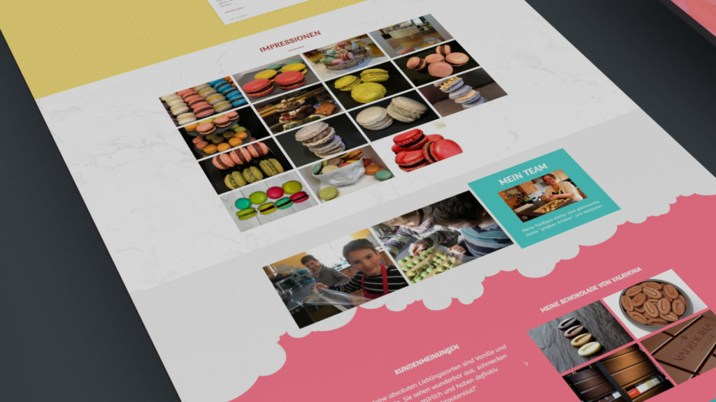 Emmanuelle Bischof macht in liebevoller Handarbeit köstliche kleine Macarons. Ein Gaumenschmauß, den wir als Dank für die Überarbeitung ihrer Website höchstpersönlich genießen durften. Bunt, knallig und mit verspieltem Charme – so sind Emmanuelles französische Köstlichkeiten und das wollten wir auch im Design der Website widerspiegeln.