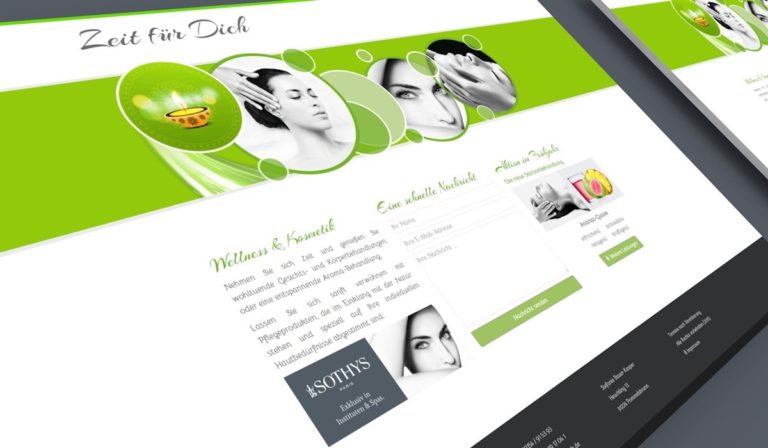 Für Zeit für Dich Kosmetik erstellten wir diese einfache und geschmackvolle Internetseite mit nützlichen Features wie aktuellen Angeboten und Standortkarte. Das Webdesign wurde an das Design des Flyers angelehnt und als One-Page umgesetzt.